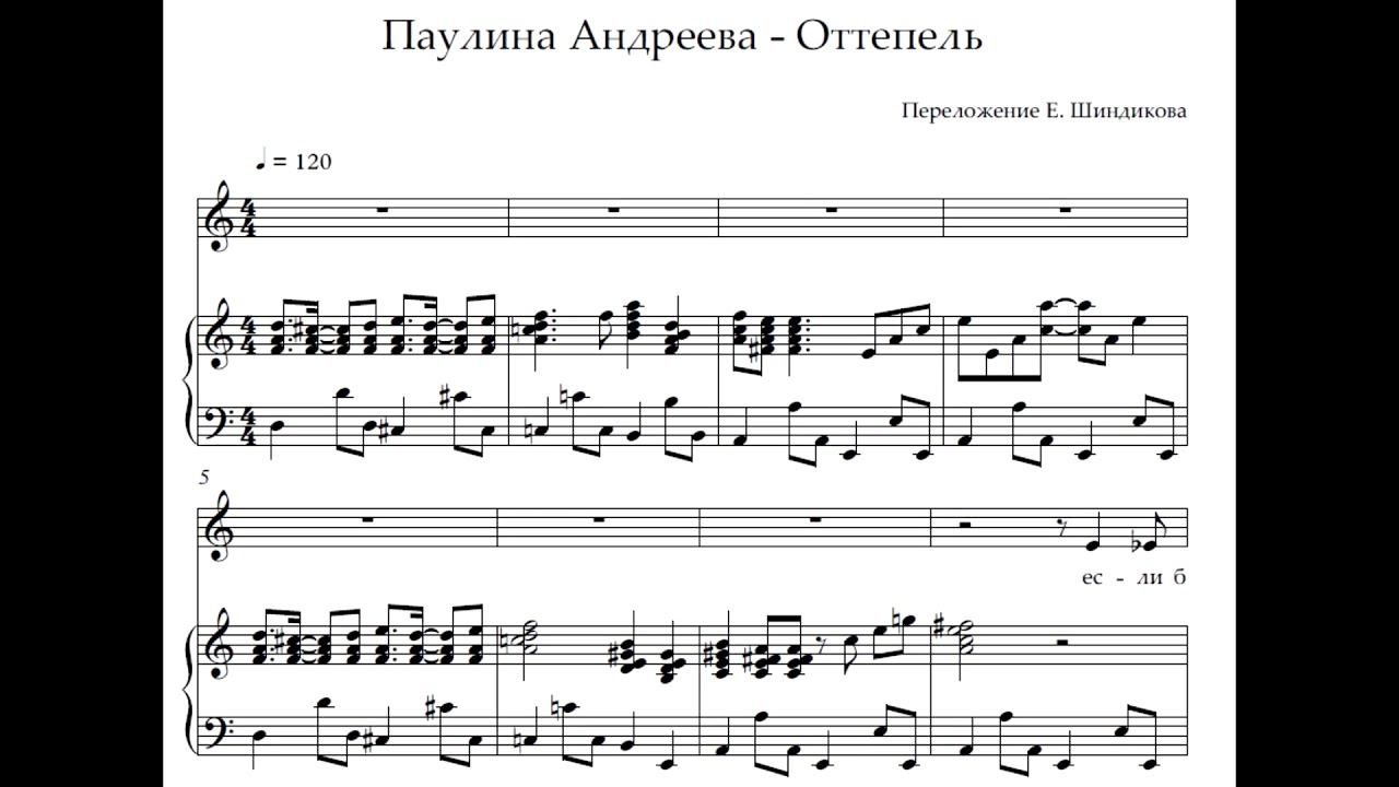 Ноты Паулина Андреева - Оттепель (К. Меладзе)