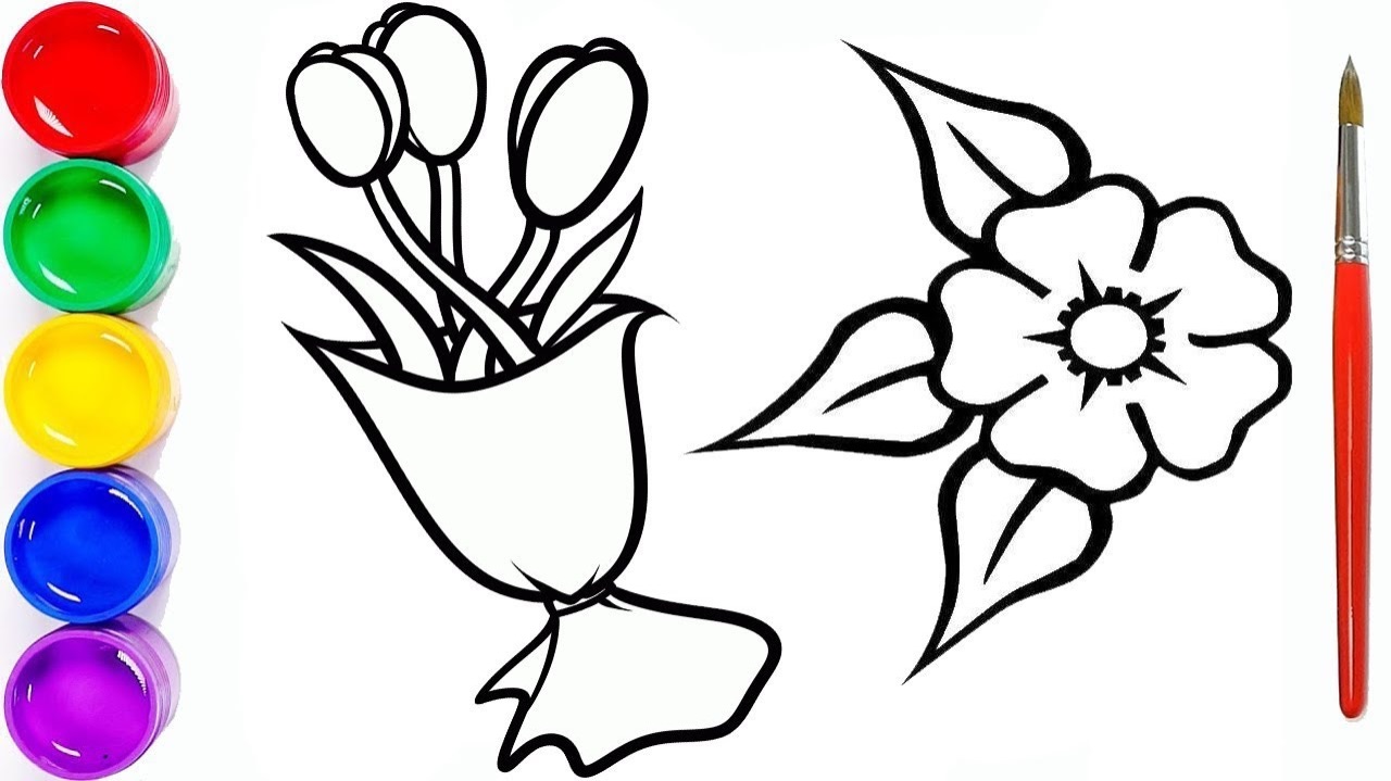 Мультик раскраска для детей и малышей. Новый сборник рисунков. Как нарисовать цветок и красивые цветы #рисунок#раскраска#мультик#сборникдлядетей