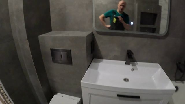 Ремонт санузла до и после. Керамогранит 600*1200, в новостройке, короб с нишами.
