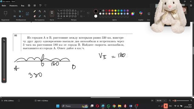 Из городов A и B , расстояние между которыми равно 330 км, навстречу друг другу одновременно выехали два автомобиля и встретились через 3 часа на расстоянии 180 км от города B . Найдите скорость автомобиля, выехавшего из города A .