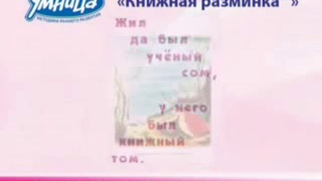 Ссылки: http://www.umnitsa.ru/cat/sistema-razvitija-intellekta-s-peljonok--kartochki-domana-na-dvd/ http://www.umnitsa.ru/cat/chtenie-i-rech/seriya-knig-knizhnaya-razminka/ Подписаться на другие видео занятий и успехов умничек https://www.youtube.com/user/umnitsaru?feature=mhee Сайт компании «Умница» и интернет-магазин http://www.umnitsa.ru/ Горячая линия по раннему развитию 8-800-200-08-07 Сайт компании «Умница» и интернет-магазин http://www.umnitsa.ru/ Горячая линия по раннему развитию 8-800-200-08-07 http://club.umnitsa.ru/ - Клуб родителей умничек "Моя Умница" http://vk.com/club9516243 http://www.facebook.com/UmnitsaClub