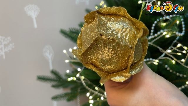 332273 Елочное украшение Роза с глиттером золотое 8см