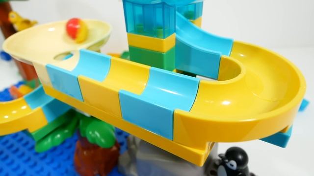 Веселая горка Building Block ☆ Конструктор лего Marble Run ASMR - «Акула и корабль»