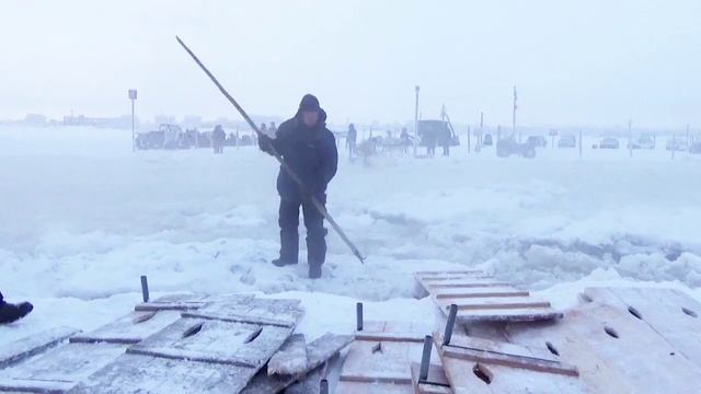 Каждую зиму запускают ледовую пешеходную переправу через Северную Двину, чтобы люди спокойно перебирались Архангельск.с острова, где живут на большую землю, т.е. в город
