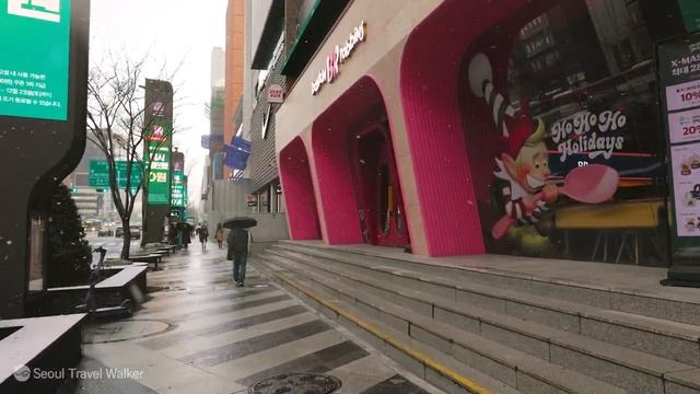 강남 첫 눈 내리는 아침풍경, 한파 속 강남대로를 걷습니다. 서울 강남 여행, 서울여행워커.