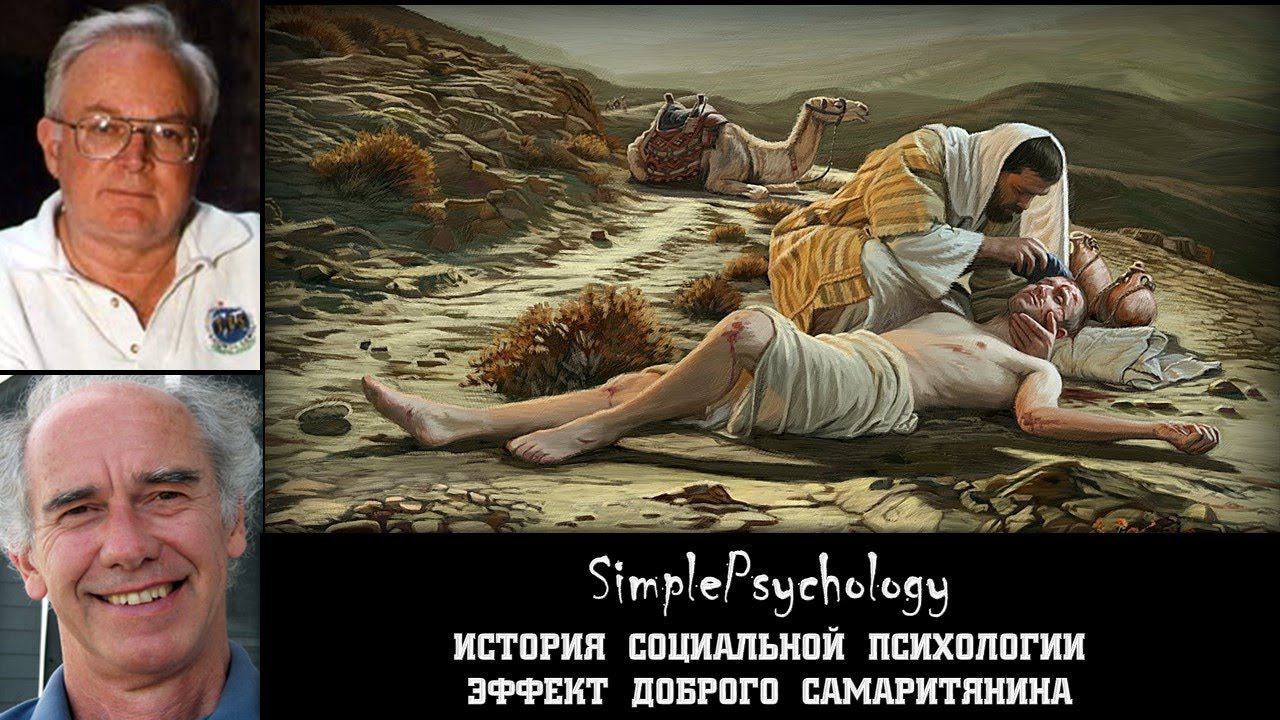☛ https://boosty.to/simplepsychology - новые видео и дистанционное обучение Кешбек сервис, которым я пользуюсь - http://got.by/45cbmo === - На эти эксперименты Джона Дарли и Дэниела Бэтсона натолкнула библейская притча от добром самаритянине, где священник и левит проходят по дороге мимо раненого странника, оставляя его заботам скромного самаритянина. Эксперименты раскрывают еще один фактор просоциального поведения. Влияние этого фактора на поведдение человека и было названо эффектом доброго самаритянина. ====================================================== ☛ http://vk.com/primalinstinct - наша группа (вся информация по сотрудничеству и важные объявления здесь). ☛ http://www.youtube.com/SimplePsychology - канал по психологии ☛ http://www.youtube.com/SimplicityOfScience - канал по менеджменту и другим наукам. ================================= Для тех кто хочет поддержать проект: ☛ 41001213871702 - Яндекс кошелек. ☛ R502021272863 - Вебмани. ☛ Z615442054561 - Вебмани. ☛ за другими реквизитами пишите в личку, либо смотрите в группе. Деньги будут потрачены на покупку оборудования и организацию различных мероприятий (текущие цели и список поддержавших указаны в группе). ============================= По сотрудничеству: ☛ заходим в группу, под описанием есть спойлер с меню группы жмакаем туда, выбираем нужный вам пункт и изучаем его, только потом пишем мне. ☛ старайтесь писать именно в вк (почту не всегда смотрю). ==================================================== ☛ Частичный список литературы находится в группе. ======= Спасибо за просмотр! ======= ==== Записаться на курс по гипнозу и гипноанализу - https://classicalhypnosis.ru/obuchenie