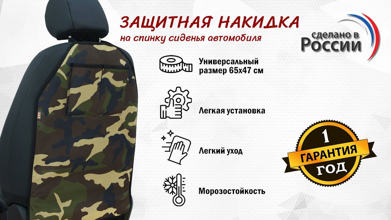 Накидка на спинку сиденья автомобиля из ткани Оксфорд с карманами Цвет: камуфляж. Промо-ролик