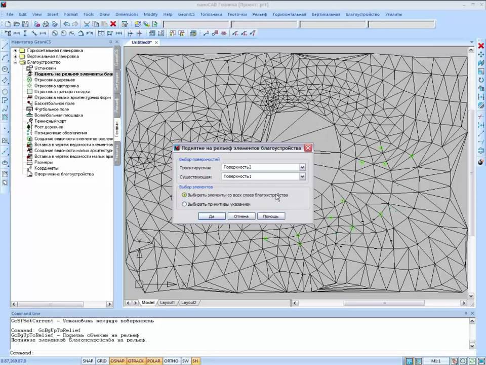 nanoCAD Геоника. Генплан: Подъем на рельеф