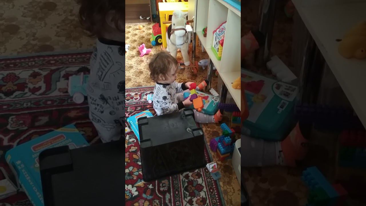 Маленький Лёва играет с конструктором.