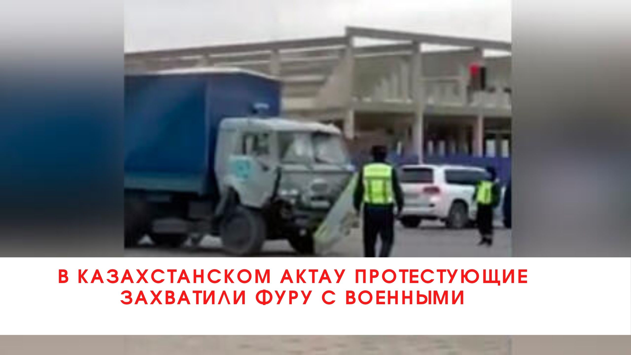 В казахстанском Актау протестующие захватили фуру с военными///