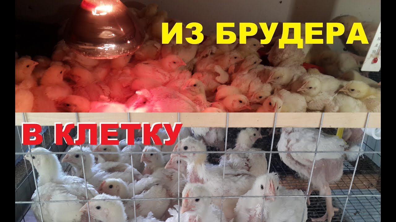 Пересадка цыплят бройлера из брудера в клетку