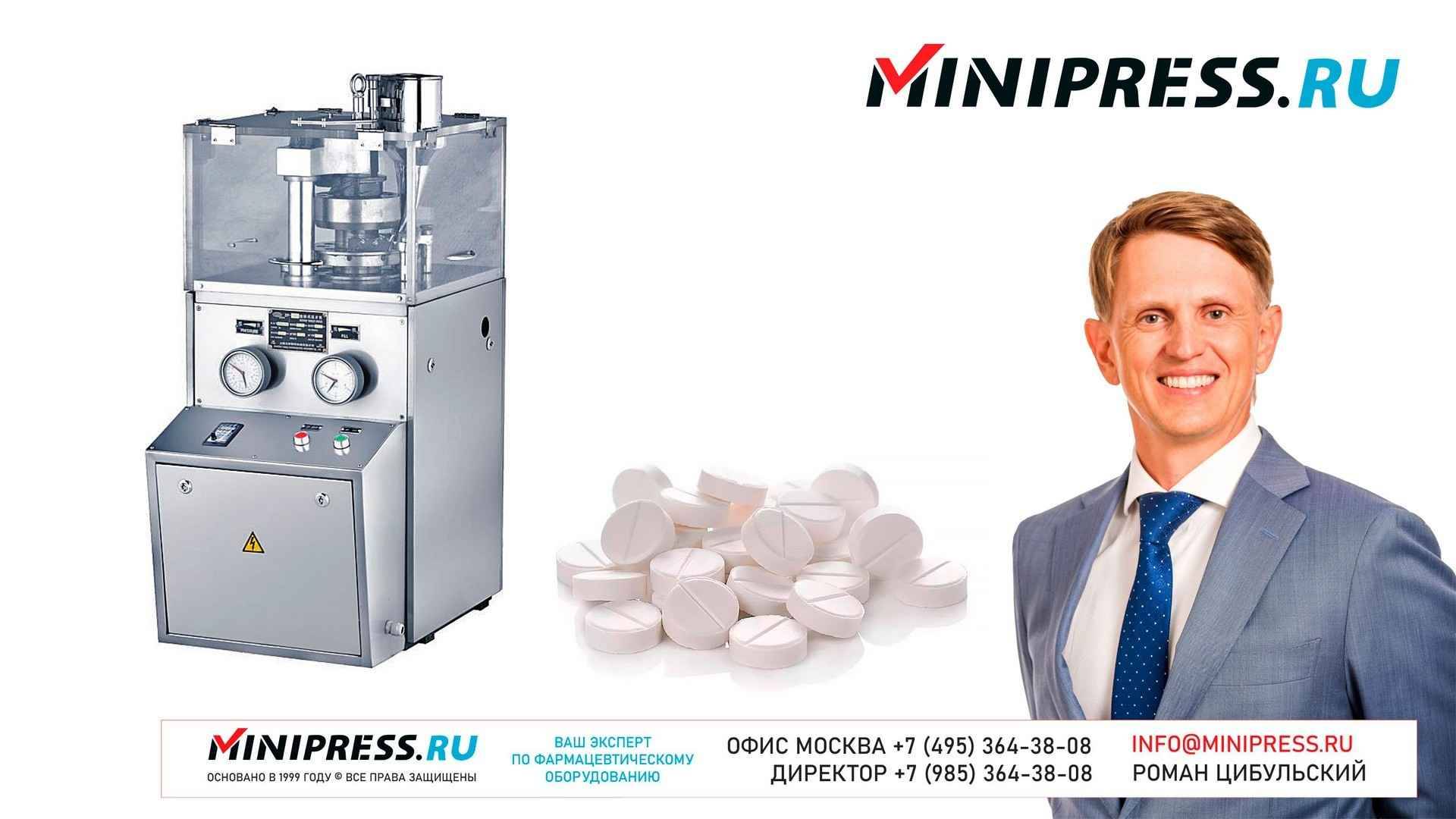 Роторный таблеточный пресс RZ-5 https://Minipress.ru/katalog/ Фармацевтическое оборудование. Специалисты в фармацевтическом оборудовании и технологиях производства лекарств. Более 20 лет оказываем нашим клиентам помощь в выборе, поставке, наладке различного фармацевтического оборудования! Вы в поиске надежного поставщика оборудования? Мы предоставим вам лучший сервис 24/7. Собрана лучшая команда профессионалов в фармацевтической отрасли и налажены стабильные связи с лучшими производителями. Мы не только продаем, но и производим многие модели оборудования Директор компании Минипресс Роман Цибульский Поставка фармацевтического оборудования в Россию Пишите: info@minipress.ru Телефон +7(495)364-38-08; Мобильный +375(29)308-00-00 Россия, Москва Skype: RomanTsibulsky; ICQ: 310-134-490 Подписывайтесь на наш видео канал на Youtube https://youtube.com/user/wwwMinipressru Обновленный сайт https://Minipress.ru Каталог оборудования https://Minipress.ru/katalog/ МЫ В СОЦИАЛЬНЫХ СЕТЯХ G+ https://plus.google.com/+RomanTsibulsky/ FB https://facebook.com/roman.tsibulsky YOUTUBE https://youtube.com/user/wwwMinipressru IN https://ru.linkedin.com/pub/roman-tsibulsky/a6/933/661 БОЛЬШОЙ КАТАЛОГ ФАРМАЦЕВТИЧЕСКОГО ОБОРУДОВАНИЯ https://minipress.ru/katalog/ Постоянно обновляемый каталог различного фармацевтического оборудования с фотографиями, описаниями, видео и ценами. ПЕРСОНАЛЬНЫЙ МЕНЕДЖЕР 24 ЧАСА https://minipress.ru/katalog/ Вы общаетесь по всем вопросам, с момента первой консультации и до получения оборудования, с одним специалистом. СПЕЦИАЛИСТЫ И ТЕХНОЛОГИ https://minipress.ru/katalog/ Имеем обширные связи в фармацевтической среде, найдем любого специалиста, поможем с освоением оборудования и технологий. ОБСУЖДЕНИЕ ВАШИХ ИДЕЙ ПО ПРОИЗВОДСТВУ ПРОДУКЦИИ https://minipress.ru/katalog/ Поможем в оценке ваших идей. Большой опыт в организации различных производств и выпуске продукции. Ценные советы. ФАРМАЦЕВТИЧЕСКОЕ ОБОРУДОВАНИЕ Мы поставили перед собой задачу, помогать нашим клиентам в правильном выборе фармацевтического оборудования. Многолетний опыт подобной деятельности показывает, что многие клиенты сталкиваются, в первую очередь, с непониманием технологического процесса. Покупка оборудования должна быть финальной точкой после подробного обсуждения задачи, консультацией с производителем оборудования, отправкой сырья и материалов на фабрику, тестирования в работе. ДЛЯ ТАБЛЕТОК https://minipress.ru/katalog/category/farmacevticheskoe_oborudovanie/ Смешивание порошков, гранулирование, прессование, обеспыливание, покрытие оболочками, фасовка, упаковка, счет, нанесение логотипов ДЛЯ ЖЕЛАТИНОВЫХ КАПСУЛ https://minipress.ru/katalog/category/farmacevticheskoe_oborudovanie/kapsulyatory-dlya-tverdyh-zhelatinovyh-kapsul/ Фасовка порошков и масел, обеспыливание, счет и фасовка, упаковка, нанесение логотипов. ФАСОВКА И УПАКОВКА https://minipress.ru/katalog/category/upakovochnoe_oborudovanie/ Упаковка в пластиковые и стеклянные флаконы, блистер, фольгу, ламинированную бумагу, стеклянные ампулы, саше, стрипы, тубы, тюбики, контурную ячейку. ТЕХНОЛОГИЧЕСКОЕ https://minipress.ru/katalog/category/eksperimentalnoe-oborudovanie/ Лабораторное, аналитическое, подготовительное, отдельные машины и линии под ключ. СФЕРЫ ДЕЯТЕЛЬНОСТИ Наша компания занимается множеством направлений фармацевтического бизнеса! Предлагаем Вам посетить страницы нашего сайта https://www.Minipress.ru по различным специализациям. ОБОРУДОВАНИЕ ДЛЯ НАКЛЕЙКИ ЭТИКЕТОК НА БУТЫЛКИ АМПУЛЫ ФЛАКОНЫ https://minipress.ru/katalog/oborudovanie-s-otzyvami/oborudovanie-dlya-naklejki-etiketok-na-butylki-ampuly-flakony/ Автоматическое этикетировочное оборудование для этикеток на клеевой основе БЛИСТЕРНЫЕ МАШИНЫ Д