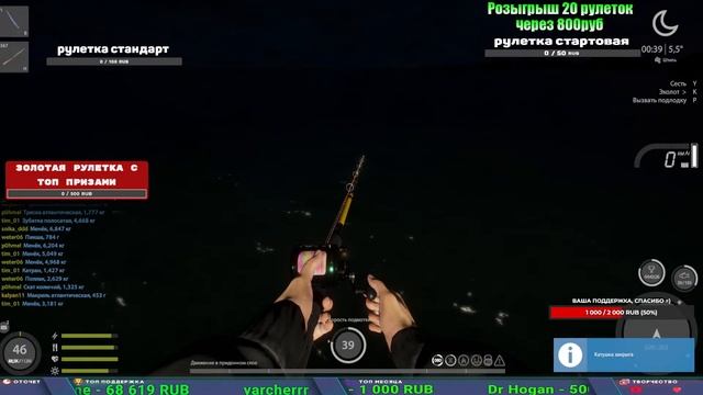 Поддержка донатом https://www.donationalerts.com/r/kalyamba11 Альтернативный донат https://new.donatepay.ru/@1032463 Если стрим лагает,смотри стрим на трово https://trovo.live/s/Kalyamba_na_Ribalke ТОП 1 ДОНАТЕР МЕСЯЦА поддерживающий трансляции получит подарок в виде катушки TAIGA c40 2s Мой ВК - https://vk.com/kalyantv НИК в игре kalyan11 НАШ ДИСКОРД СЕРВЕР https://discord.gg/mSbnTJK8TB Заказ водоема на 1 час - 500р ( весь стрим 2500р ) Модерка на канале 1100р ( каждая следующая на 100р больше) Озвучка доната на 40р,50р,100р,200р,300р,500р,1000р ✅Призы в рулетке "ЗОЛОТАЯ" ✔ ЗОЛОТО ✔ ПРЕМ ✔ КАТУШКИ РАПТОР 40, АЗИМУТ 10000, СИЛЬВЕР 80, ТАЙГА с 30 ЮБИЛЕЙНАЯ, ✔ ПАЛКИ ПИЛКЕРНАЯ, ДОНКА МОРСКИЕ, ✔ РОД ПОД, СТУЛЬЯ ✅Призы в рулетке СТАНДАРТ : ✔ катушка "РАПТОР 40" ✔ катушка "АЗИМУТ 10000" ✔ катушка "ТАЙГА С30, С40, С30 (юбилейная)" ✔ катушки 60 для медного ( ЭВИИ, НАТОРЫ, ГОЛДА, и тд) ✔ ПИЛКЕРНОЕ УДИЛИЩЕ КОРОЛЕВА ОКЕАНА ✔ Морское Донное удилище ✔ прем ( 3, 7, 30 дней) ✔ золото ( 1, 3, 5, 10, 20 ,50) ✔ билет на море ( 1, 3, 5 дней) ✔ голд наживка и др. ✅Призы в рулетке "СТАРТОВАЯ" ✔ катушка "silver80" ✔ катушка "БЕЛЫЙ КАЛИБР" ✔ катушка "Черный калибр" ✔ катушка "Протон" ✔ катушка "Нарга 6000" ✔ Набор Фидерист и спинингист ✔ Карповик Фортуна ✔ фидерные удилища ✔ прем, золото, алкашка, наживки и тд P.s Рулетка это не казино, а награда за поддержку стримера. Вечный ТОП ПОДДЕРЖКИ (11.05.2024) 1. Dimon_pokemonchik 119 784 2. Interceptor 75 508 3. Skreb79 71 261 4. une personne 68 619 5. Нарвал77 31 550