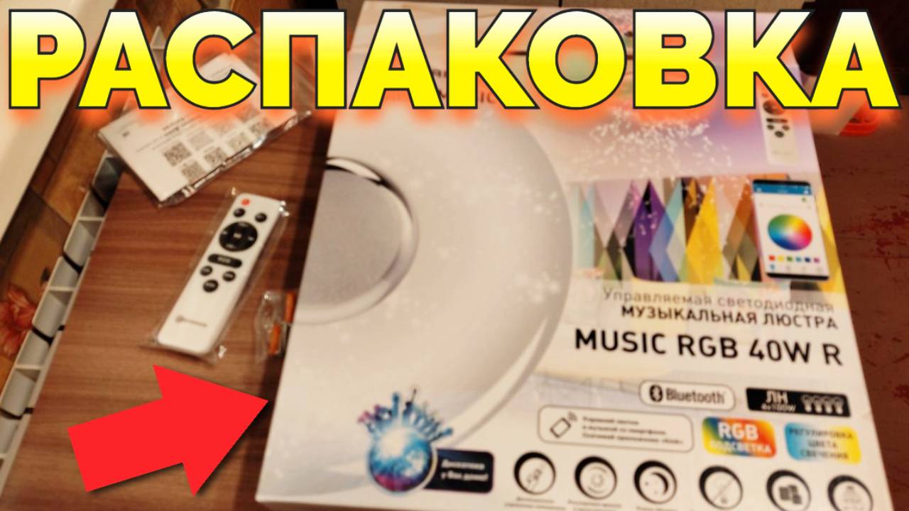 RGB музыкальная люстра с подсветкой и колонкой Bluetooth Music RGB 40W R распаковка