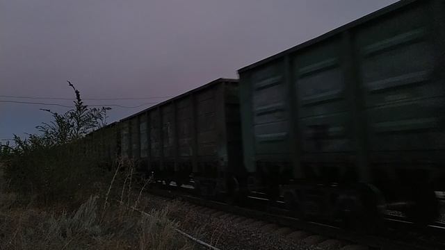 Грузовой состав под управлением 2ТЭ25Км - 0127 промчался по 1гл.пути на Лихую. СКЖД. 15.08.23г. 19:44.
