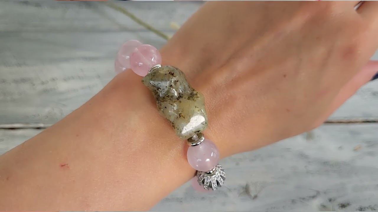 Браслет из розового кварца, пренита