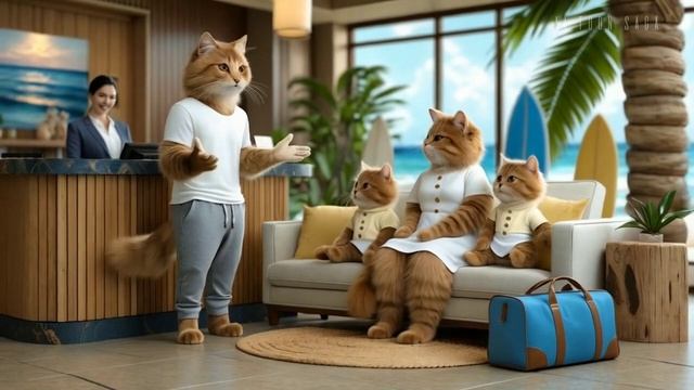 😸Brown Cat Family's Beach Cruise Adventure _ AI Animated Story👙👓👒🛳️🌊
