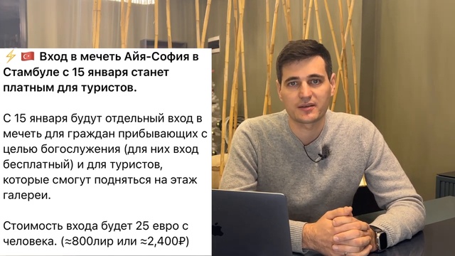 ТУРЦИЯ Приветствует Вас More Emlak! Новостная рубрика! 00:00 Коротко о главном! 00:29 Турция в десятке самых посещаемых стран в 2023 00:46 Аэропорт Чукурова оживит туризм в Мерсине 02:23 Новые правила посещения Айя Софии 02:45 Массовые проверки арендного жилья в Анталье и Аланье 03:31 Каждая десятая компания в Анталье - иностранная 04:30 В Алании установлено 600 камер уличного наблюдения Делитесь новостями! По всем вопросам недвижимости пишите и звоните: ?Отдел продаж в Москве +7 962 991 5802 Подписывайтесь на наши странички в социальных сетях: ?Море Эмлак ВКонтакте https://vk.com/moreemlak ?Instagram офис Арпачбахшиш https://www.instagram.com/mersin_more... ?Instagram Юлия https://instagram.com/mersin_turkey_n... ?Telegram-канал https://t.me/+mewF-qVLma44OTU0 ?НАШ САЙТ https://moreemlak.site/ ?ИНВЕСТИЦИОННЫЕ ПРЕДЛОЖЕНИЯ https://moreemlak.site/newbuilding ?АРЕНДА КВАРТИР в Мерсине тел: +90 555 089 20 35 ?Наш офис в Москве: Продажа/Аренда в Москве и МО, Анастасия тел: +7 962 991 5802 ____________________ ❗❗❗БЕСПЛАТНЫЙ СМОТРОВОЙ ТУР в Мерсин❗❗❗ А вы видели НЕ туристическую Турцию? Хотели бы побывать в самом сердце востока? ?Приглашаем вас посетить настоящий турецкий мегаполис - Мерсин! Вы увидите, как древние исторические улицы пересекаются с современной инфраструктурой мегаполиса! В тур входит: ?встреча в аэропорту ?заселение в отель или апартаменты на 3 ночи ?знакомство с городом ?просмотр объектов недвижимости ?Оставьте заявку на бесплатный тур в Мерсин WhatsApp +90 501 003 16 33 _____________________ ➡️ Смотрите наши предложения, новости и влоги: https://youtu.be/L9SI8iMFa-I https://youtu.be/2u9j5YhFcvs https://youtu.be/F3htvrcaJZk https://youtu.be/QbtJzrgOLPc https://youtu.be/3z7elQQzoQk #мерсин #недвижимостьтурция #moreemlak #новоститурции