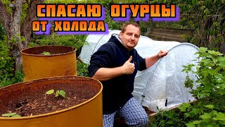Укрываю огурцы на грядке от холода укрывным материалом спанбондом