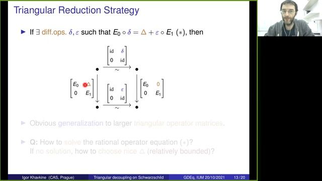 20 Oct 2021 Igor Khavkine Triangular decoupling of systems of differential equations, with application to separation of variables on Schwarzschild spacetime Geometry of differential equations Страница семинара - https://gdeq.org/Seminar The seminar works at the Independent University of Moscow - https://mccme.ru/ru/nmu/ Эта и другие лекции смотрите на канале RuTube - https://rutube.ru/channel/42881756/