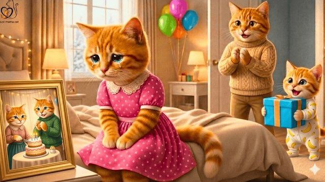 Кошка-мама чувствует себя забытой в свой день рождения Секретный шедевр рыжего котенка вас шокирует.