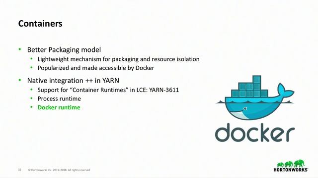Apache Hadoop YARN is the modern distributed operating system for big data applications. It morphed the Hadoop compute layer to be a common resource management platform that can host a wide variety of applications. Many organizations leverage YARN in building their applications on top of Hadoop without themselves repeatedly worrying about resource management, isolation, multi-tenancy issues, etc. In this talk, we’ll start with the current status of Apache Hadoop YARN—how it is used today in deployments large and small. We'll then move on to the exciting present and future of YARN—features that are further strengthening YARN as the first class resource management platform for data centers running enterprise Hadoop. We’ll discuss the current status as well as the future promise of features and initiatives like: powerful container placement, global scheduling, support for machine learning and deep learning workloads through GPU and FPGA support, extreme scale with YARN federation, containerized apps on YARN, support for long running services (alongside applications) natively without any changes, seamless application upgrades, powerful scheduling features like application priorities, intra-queue preemption across applications, and operational enhancements including insights through Timeline Service V2, a new web UI, and better queue management.