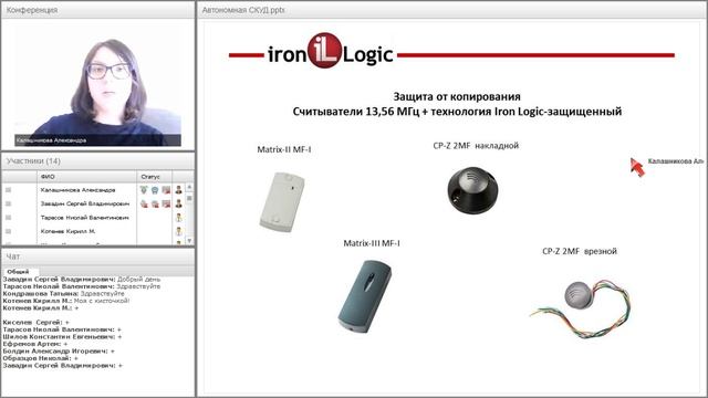 Вебинар “Автономная СКУД для начинающих от Iron Logic” Участники вебинара познакомились с основными характеристиками элементов автономной системы контроля доступа - идентификаторами, считывателями, автономными контроллерами, исполнительными устройствами. Программа вебинара 1. Основные элементы автономного контроля доступа 2. Обзор оборудования "Iron Logic": 2.1 Считыватели 2.2 Автономные контроллеры 2.3 Исполнительные устройства - замки 3. В каких случаях необходимо строить СКУД на считывателях Mifare 4. Решение проблемы появления большого количества идентификаторов-клонов EM-Marine на объекте 5. Создание, сохранение, редактирование, удаление базы данных автономного контроллера с помощью компьютера Лектор: менеджер по связям с общественностью и рекламе компании "Iron Logic" Калашникова Александра. Вебинар состоялся при поддержке ООО "ТД ТИНКО" 23.05.2017 Продукция "Iron Logic" в Каталоге "ТД ТИНКО": https://www.tinko.ru/brands/ironlogic/