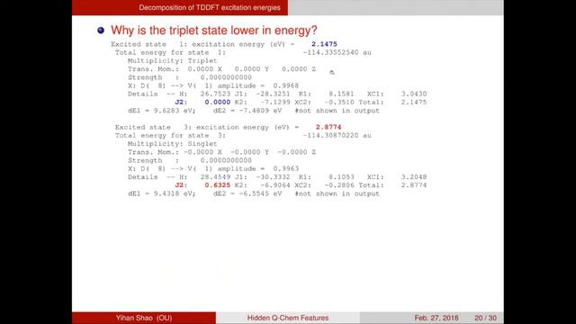 TABLE OF CONTENTS w/Timestamp Links: 2:30 Webinar Overview FEATURE 1: POTENTIAL ENERGY SCAN 3:01 Relaxed Potential Energy Scan 6:19 Frozen Potential Energy Scan 7:32 Restrained Potential Energy Scan 10:52 Restrained Geometry Optimization FEATURE 2: ELECTROSTATIC-POTNTIAL-DERIVED (ESP) CHARGES 11:50 Charge Populations in Q-Chem 14:40 ESP/RESP Charge Calculations 16:20 ESP Charges with different grids 17:44 ESP and RESP Charges 18:34 ESP Charges for TDDFT Excited States 20:22 ESP and RESP charges output FEATURE 3: DECOMPOSITION OF TDDFT EXCITATION ENERGIES 21:33 TDDFT Excitiation Energies 24:25 Sample Input: H2CO 28:18 Why is the triplet state lower in energy? 29:56 TDDFT with B3LYP functional vs. wB97X-D functional FEATURE 4: MULTIPLE-ENVIRONMENT SINGLE SYSTEM QM/MM 34:31 MESS / QM/MM: QM/MM calculations with a Fixed Geometry QM Region 36:20 MESS/ QM/MM: Fast Estimation of QM/MM Energy 37:59 Hydration Free Energy Calculations/Computational Strategy 39:57 QM/MM Hydration Free Energy Calculation - Compuational Efficiency 41:24 QM/MM Hydration Free Energy Calculation - Compuational Accuracy GENERAL RESEARCH INTEREST 43:58 What the Shao Research Group is Doing 46:11 Acknowledgements 49:04 Q&A Presenter: Prof. Yihan Shao Dr. Yihan Shao worked at Q-Chem from 2002 to 2016. Afterwards, he moved to the University of Oklahoma, where his research group continues developing QM/MM methodology. Here is a link to the power point slides for this presentation: http://www.q-chem.com/tutorial/PPTfor%20YouTubeTutorial-0218_YShao.pdf