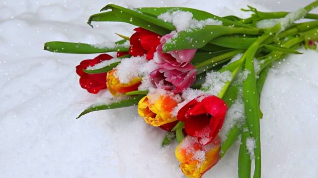 Футаж. Цветы на снегу 59