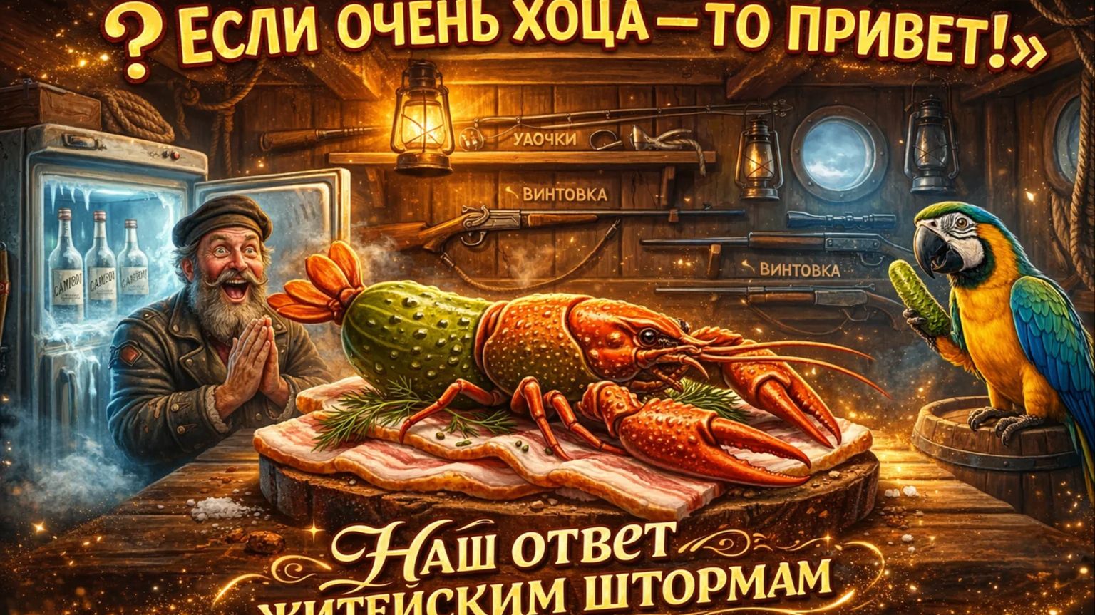 🥃 Если очень хоца — то привет! Наш ответ житейским штормам Житейский путь — он, ах, как сложен! То взлеты, то падения, то шаг вперед, то внезапный зигзаг. Но что делать, когда ураган пронесся, а штиль всё не наступает? Правильно — доставать проверенное средство из морозилки! Этот клип для тех, кто: ⚓️ Устал бороться с волнами и решил просто насладиться моментом. 🥒 Знает, что лучший антистресс — это «рак пупырчатый» и кусочек сала на черном хлебе. 🚫 Решил, что к врачу можно пойти и послезавтра, а удача нужна прямо сейчас! В этом видео: Как забить на охоту, рыбалку и даже свадьбу ради душевного спокойствия. Рецепт идеального «пиратского» штиля в домашних условиях. Гимн всех оптимистов, которым «очень хоца», а значит — можно! Слушай, подпевай и помни: наша жизнь — безбрежный океан, и только мы решаем, какой градус удачи сегодня в нашем флаконе! 🌊🥃 Ставь лайк, если тоже влюблен в «закуску из подвала»! Подписывайся, у нас тут всегда попутный ветер!
