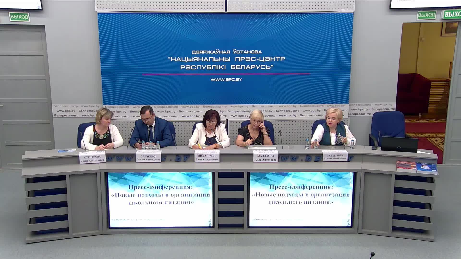Малахова Алла Антоновна - заведующая отделением гигиены детей и подростков государственного учреждения «Республиканский центр гигиены, эпидемиологии и общественного здоровья» Министерства здравоохранения Республики Беларусь, Михальчук Люция Чеславовна – начальник отдела по организации питания Национального института образования Министерства образования Республики Беларусь, Лукашевич Надежда Владимировна – директор Государственного предприятия «КШП города Минска», Зайченко Дмитрий Александрович – заместитель генерального директора по научной и инновационной работе научно-практического центра НАН Беларуси по продовольствию, Степанова Елена Анатольевна – заместитель директора по научной работе РУП «Институт мясо-молочной промышленности» НАН Беларуси Задать вопрос: vopros@bpc.by Вся самая актуальная и оперативная информация о пресс-мероприятиях Национального пресс-центра Республики Беларусь будет публиковаться на нашем телеграм-канале. Подписывайтесь на нас: https://t.me/s/belpresscenter