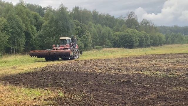 Идет дискование сидератов в поле. Здесь будут сеять полбу (в последнее время очень популярна). А у вас на даче какая есть механизация?