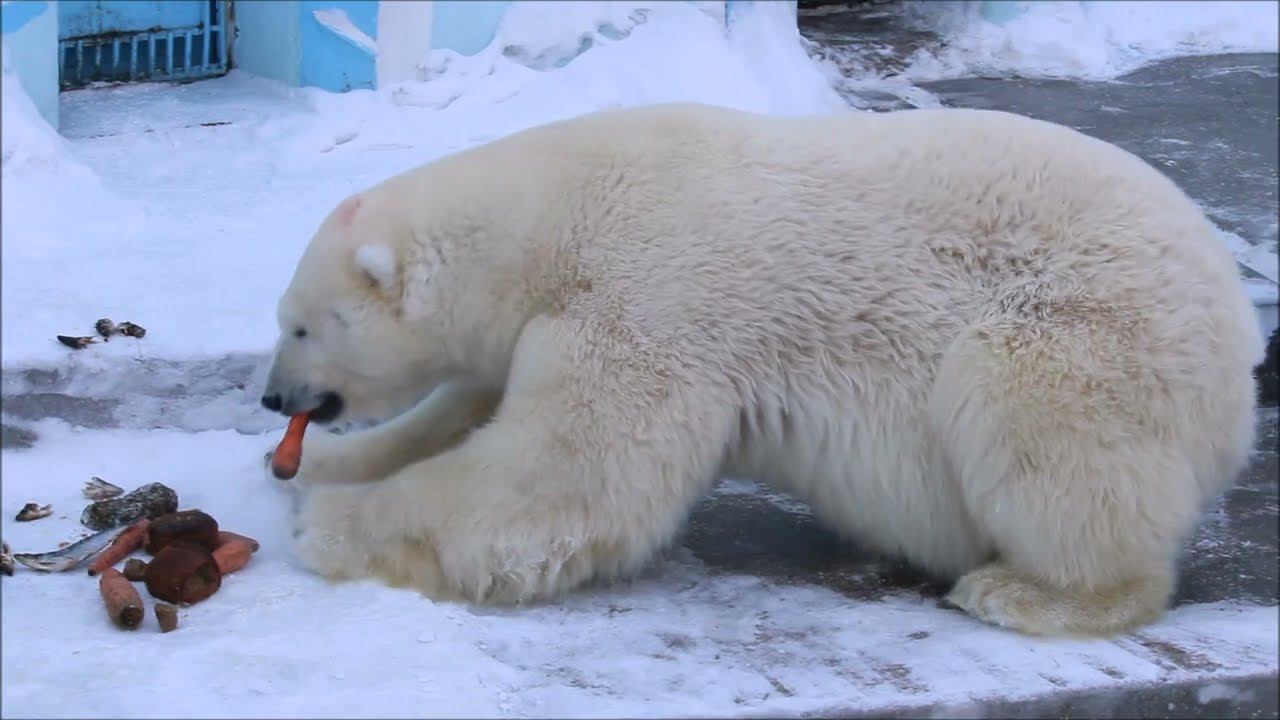 Кай (Красин) родился в Санкт-Петербурге 27 ноября 2007 года. В Новосибирск переехал 20.06.2008. Мама Услада, папа Меньшиков. Второй по величине сухопутный хищник планеты после гребнистого крокодила. Масса животного может достигать 800 кг. Средний вес самца 400—450 кг, длина тела 200—250 см. Самки заметно мельче: средний вес 350—380 кг, длина тела 160—250 см. Высота в холке 130—150 см. Подошвы ног покрыты шерстью, что позволяет им не скользить по льду и не мёрзнуть. Между пальцами есть плавательная перепонка, а передняя часть лап оторочена жёсткими щетинками. Крупные когти могут удержать даже сильную добычу. Одиночные животные. Как правило, миролюбивы по отношению друг к другу, но между самцами в брачный период случаются стычки. Взрослые самцы могут нападать на медвежат. Гон с марта по июнь. Продолжительность жизни — максимум 25—30 лет; в неволе рекорд долгожительства — 42 года. В зоопарке медведей кормят утром морской рыбой, хлеб с рыбьим жиром внутри, морковь, яблоки, морская капуста. Медвежат подкармливают молоком из соски. На ужин мясо (говядина, конина, куры или индейка). Летом и осенью арбузы, дыни, ранетки, кабачки, тыквы. Когда показательное кормление летом бросают живую рыбу. Обзор вольеров белых медведей https://www.youtube.com/watch?v=mAt_b7JD0B4&list=PLGvf0V-rAHxkpGKJaWIZIUxRKgKiqV3xZ&index=17&t=0s