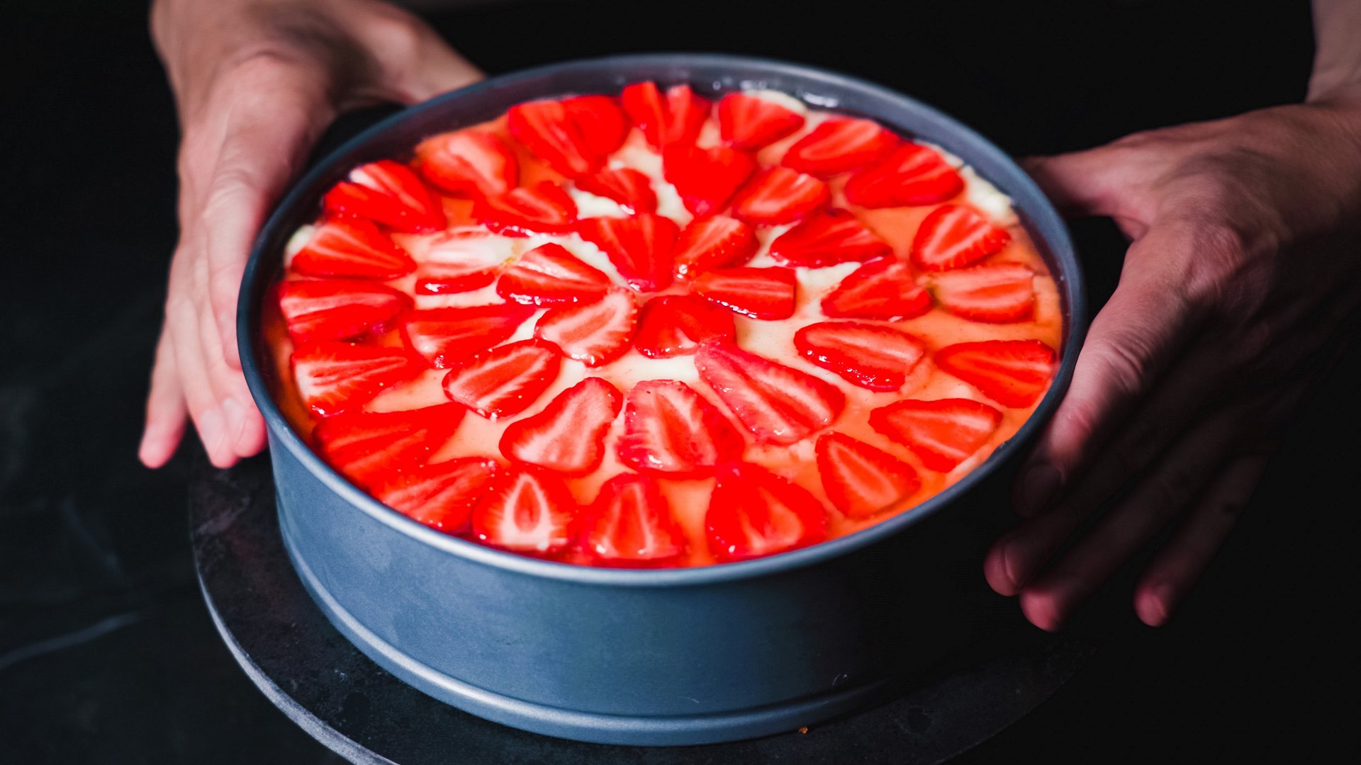Как приготовить тирольский пирог с заварным кремом Ингредиенты на форму 24 см: Яйца 2 шт Сахар 175 г Ванильный экстракт 1 ч.л. Растительное масло 100 г Сметана 200 г Мука 225 г Разрыхлитель 10 г Клубника 300 г Соль щепотка Крем Молоко 500 г Желток 3 шт Сахар 60 г Крахмал 25 г Желе Вода 80 г Сахар 80 г Желатин 5 г Лимонный сок 1 ч.л. Клубника 200 г