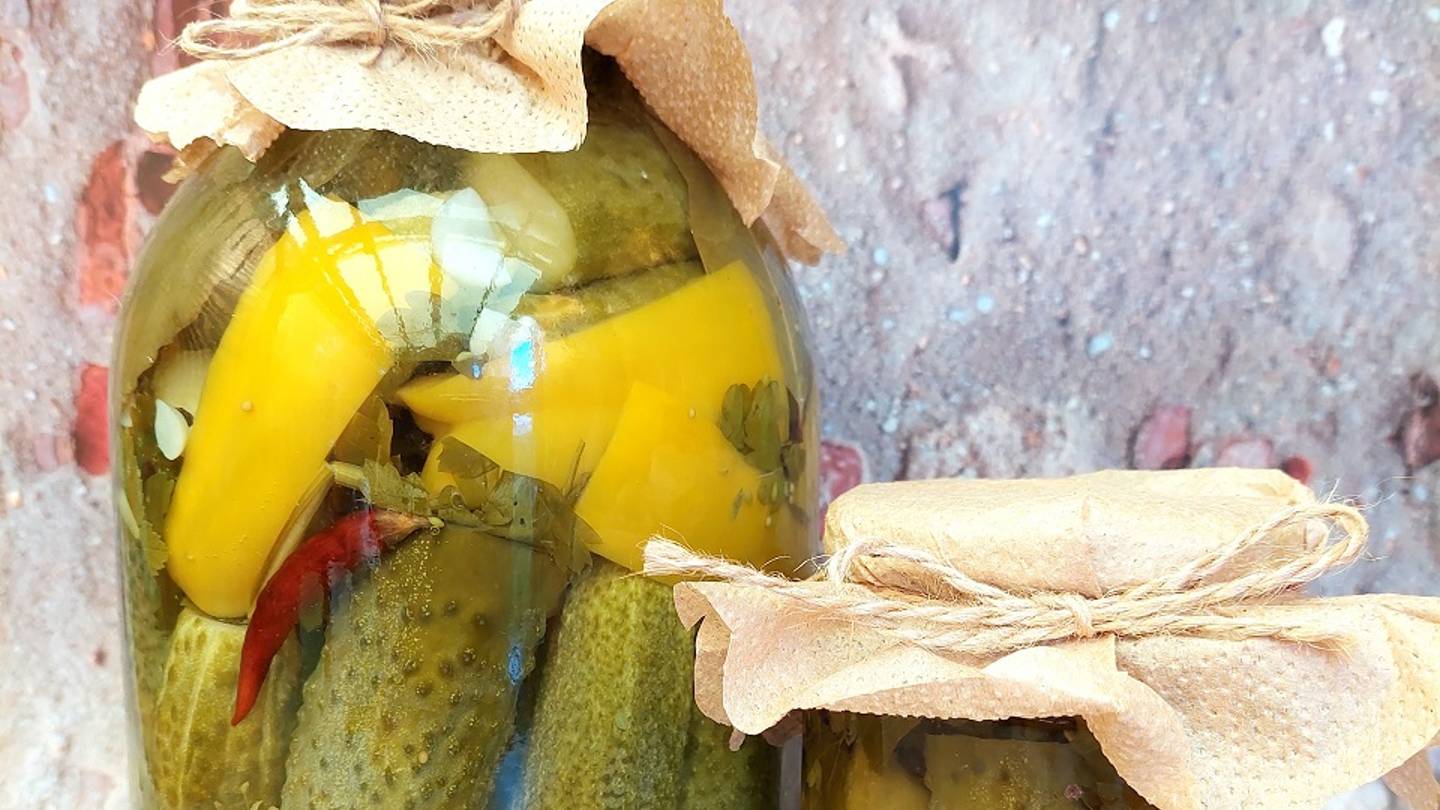 Какие бы блюда мы не готовили, излюбленными на семейном и праздничном столе традиционно остаются солёные огурцы. Огурцы с остринкой на любителя, а в нашей семье он пользуются популярностью. ИНГРЕДИЕНТЫ на банку объёмом 3 литра: • Огурцы молоденькие – сколько войдёт в банку. • Укропные зонтики – кол – во по желанию • Чеснок – 5 зуб • Листья смородины – 15 гр • Перец сладкий – 1 шт • Перец острый – 1 шт • Петрушка – 1 пуч Пряности: • Горчица в зёрнах – 1 чл • Перец душистый – 7 шт • Гвоздика – 3 шт • Перец чёрный горошек – 1 чл • Лавровый лист – 2 шт Специи: • Соль – 2 стл • Сахар – 3 стл • Уксусная эссенция 70% - 1 чл ИНГРЕДИЕНТЫ на банку объёмом 0,7 литра: • Огурцы молоденькие – сколько войдёт в банку. • Укропные зонтики – 3 шт • Чеснок – 4 зуб • Петрушка – 1 пуч • Лист смородины – 4 шт Пряности: • Перец душистый – 3 шт • Гвоздика – 1 шт • Перец чёрный горошек – 9 шт • Лавровый лист – 1шт Специи: • Соль – 16 гр • Сахар – 1 стл • Лимонная кислота – 1/3 чл Огурцы замочить в холодной воде на час – два, как позволяет время. Отрезать у огурцов кончики. Перец сладкий очистить от семян и плодоножки. Острый перец положить не очищая. На дно банки положить зонтики укропа (количество по желанию). Более крупные огурцы поставить плотно в банку, вертикально. По краю вставить дольки сладкого перца и положить два острых перчика. Сверху распределить листья смородины и веточки петрушки. Разложить небольшие огурчики горизонтально. Заполнить огурцами банку до верха. Завершить зонтиками укропа. В банку объёмом 700 мл, разложить всё так же, только без перца. Залить огурцы кипятком, закрыть крышкой и оставить на 20 – 30 минут. Подготовить необходимое количество пряностей и специй. Чеснок почистить и нарезать пластинками. По истечении времени, с огурцов слить горячую воду, она больше не понадобится. Добавить в банки все специи и пряности, залить кипятком. Банки закатать металлической крышкой для консервации, поболтать банки сверху вниз и наоборот, чтобы растворились сахар и соль. Поставить банки в «шубу» на четыре часа. Большего времени не требуется, т.к. огурцы, в последствии, могут стать мягкие. Затем следует воздушное охлаждение банок с огурцами. Когда они остынут переставить в холодное место. ПРИЯТНОГО АППЕТИТА!!! УСПЕШНЫХ ЗАГОТОВОК! Всем мира, бодрости духа и благополучия! Всем мира, бодрости духа и благополучия.