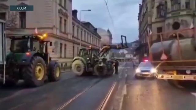 Чешские фермеры бастуют.