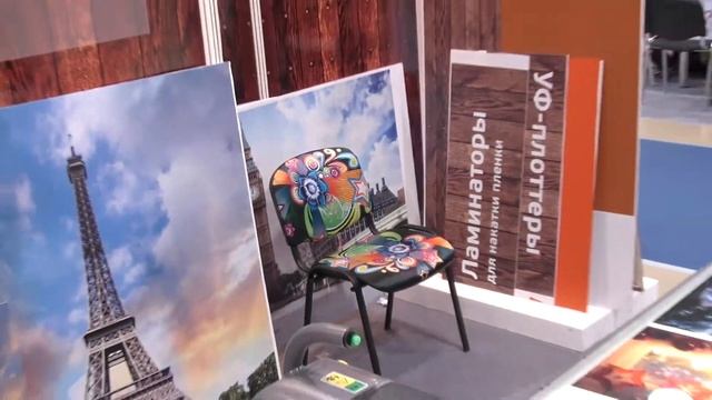 УФ принтер Jetrix и планшетный ламинатор RollOver на стенде компании ЛИР, на выставке Мебель 2013.