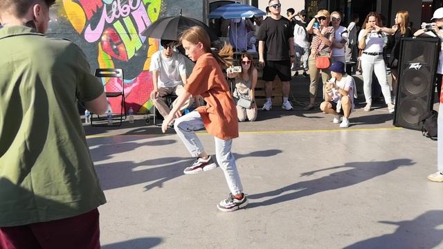 Девчонки и мальчишки показывают свои навыки в освоении модного у них стиля и соревнуются между собой.Выглядит неплохо,молодцы