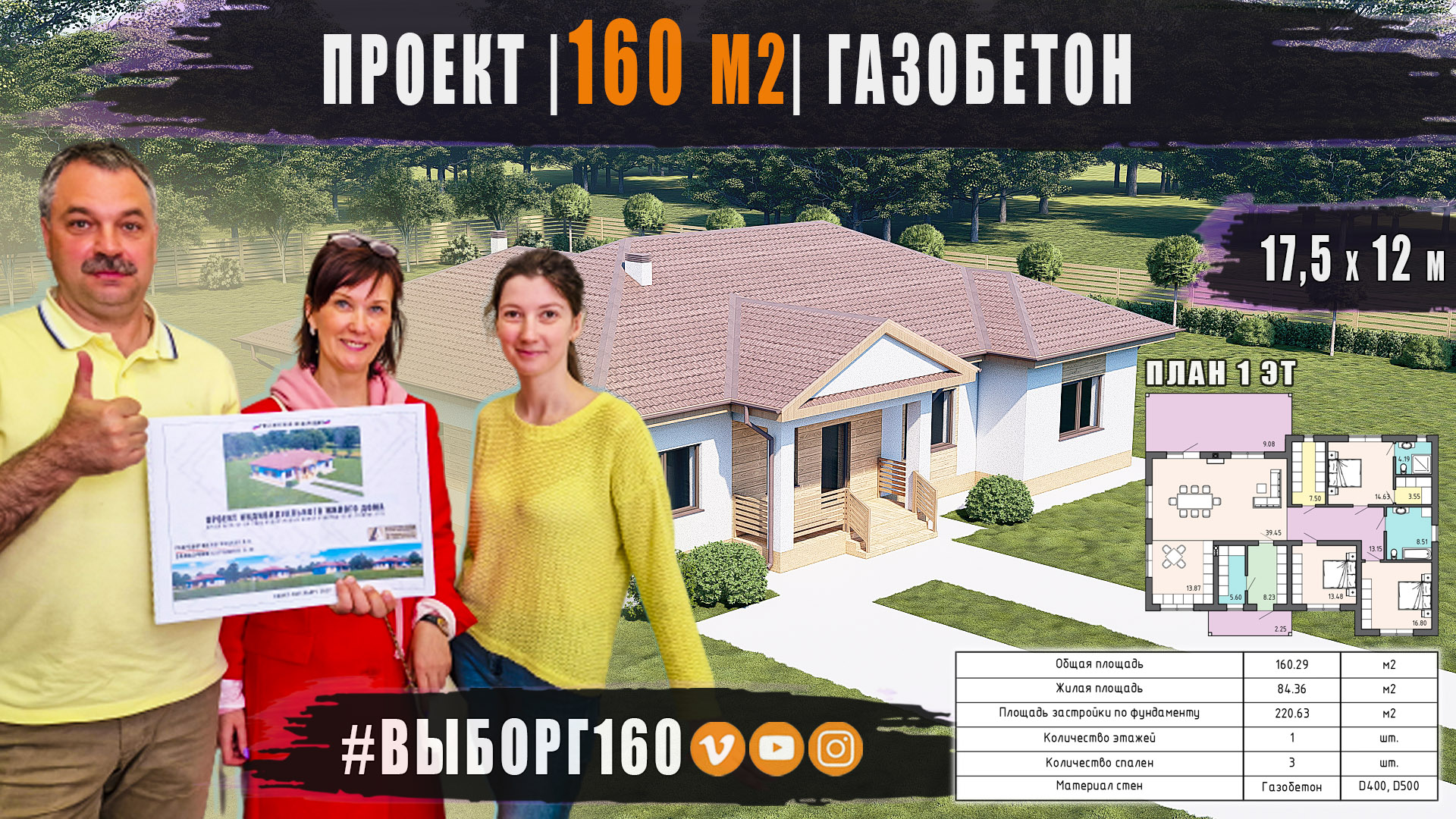 ?Выполнен индивидуальный проект одноэтажного дома ИЗ ГАЗОБЕТОНА общей площадью 160 м2 с вальмовой кровлей в Выборге / Питер? К вопросу строительства своего дома клиенты пришли ещё в 2020 году. Коттедж должен был быть из клеёного бруса, но пандемия и дикий рост цена на дерево внесли свои коррективы? Может оно и к лучшему? Дерево, это хорошо, а каменный дом ликвидно и капитально! =Характеристики коттеджа= - общая площадь – 160,29 м2 - жилая площадь – 84,34 м2 - площадь застройки по фундаменту – 220,63 м2 - габаритный размер – 17,5х12 м - количество этажей – 1 - фундамент – плита монолитная, 300 мм - стены – газобетон (наружные 400 мм, несущие внутренние 300 мм, перегородки 150 мм) - перекрытие первого этажа – по деревянным двутавровым балкам, 241 мм - кровля – холодная, вальмовая - покрытие – металлочерепица (возможно замена на мягкую кровлю) Заказать индивидуальный проект и строительство: "Проектное бюро Дарьи Коркоцкой" (ИП Коркоцкая Дарья Олеговна – ИНН: 344599917226; ОГРН: 318470400063002; ТЕЛ: 8 (812) 988-46-22; E-mail: info@daria-project.ru) #выборг160 #проектизгазобетона #проектируйистрой === ? Проектируй и Строй грамотно!