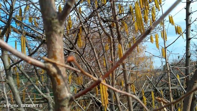 Первые пчёлки на орешнике