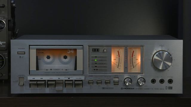 Pioneer CT-600M ¥64,800(1979年発売) Красивая кассетная дека с поиском по паузам, со стрелочными индикаторами, с шикарным звучанием. Сделано в Японии. メタルテープの性能を十分に引き出すため、ヘッドを中心に研究を進め、メタルテープポジション搭載に成功したステレオカセットデッキ。 録再ヘッドには、高域のMOL(最大出力レベル)の高いメタルテープにも磁気飽和しないヘッドとして、センダスト合金を採用しています。これによりヘッド飽和による音質劣化がなく、高入力時の歪発生を防いでいます。 メタルテープでは保磁力が強いため、一度録音された音を消し難いという性格を持っています。これに対応し十分な消去特性を得るため、新設計フェライト消去ヘッドを開発・採用しており、さらにこれをダブルギャップ構造にして強磁界を得ています。 ヘッドの発熱を防ぐため、コアを熱伝導率の高い放熱板を兼ねた取付台につけています。 ハイトルクのDCサーボモーターを搭載しており、キャプスタン軸には高精度加工を施すとともに、大型のフライホイールとツインベルト方式によって回転ムラを低減しています。 新開発のICを採用したドルビーシステムを搭載しています。 録音アンプには、ダイナミックレンジが広く、リニアリティの優れた録音アンプを採用しています。 -20dB~+8dBのワイドレンジをカバーするレベルメーターを採用しており、さらに録音ソースのピークレベルを5段階(0、+2、+4、+6、+8dB)に表示する5レベルピークインジケーターを搭載しています。 PMS(パイオニア・ミュージック・セレクトシステム)を採用しており、今聴いている曲を飛ばして次の曲に移りたい時や、もう一度イントロから聴きたい時など、自動的に曲の頭を検知し、再生します。 録音時にPMSが検知するのに必要な曲間が作れるRECミュートも搭載しています。 メモリーストップやメモリープレイ機構、Line入力とMIC入力のミキシング、キュー&レビュー、出力レベルコントロール、留守録音機構など、多彩なテーププレイが可能な機能を搭載しています。 Metal、STD/CrO2、Fe-Crの3段切換えテープsレクターを搭載しています。 STDとCrO2はテープの検知ホールの有無で自動的に切換ります。 型式 ステレオカセットデッキ モーター ハイトルクDCサーボモーターx1 ヘッド 録再:センダストヘッドx1 消去:ダブルギャップフェライトx1 早巻時間 90秒以下(C-60にて) ワウ・フラッター 0.045%以下(WRMS) 周波数特性 スタンダード、LHテープ (-20dB録音):20Hz~15kHz(25Hz~14kHz ±3dB) クロームテープ (-20dB録音):20Hz~17kHz(25Hz~16kHz ±3dB) (0dB録音):20Hz~8kHz フェリクロームテープ (-20dB録音):20Hz~17kHz(25Hz~18kHz ±3dB) メタルテープ (-20dB録音):20Hz~19kHz(25Hz~18kHz ±3dB) (0dB録音):20Hz~12.5kHz SN比(第3次高調波歪率3%、 聴感補正) Dolby off:59dB以上 Dolby on:69dB以上(5kHz以上) 歪率 1.2%以下(0dB) 入力感度/最大許容入力 /インピーダンス ライン:65mV/25V/56kΩ マイク:0.3mV/100mV/18kΩ(適合インピーダンス:250Ω~10kΩ) 基準出力/最大出力 /インピーダンス ライン:450mV/640mV/50kΩ ヘッドホン:70mV/100mV/8Ω 付属機構 ドルビーシステム 3段切換テープセレクター 自動頭出し機構 メモリーストップ/メモリープレイ機構 キュー/レビュー機構 出力レベルコントロール 5レベルピークインジケーター +8dBワイドレンジメーター 留守録音スタンバイ機構 カセット背面照明機構 エアダンプドア 使用半導体 トランジスタ:69個(モーター制御用3個) FET:2個 IC:2個 ダイオード:58個(ツェナーダイオード2個、LED8個、モーター制御用1個) 電源 AC100V、50Hz/60Hz 消費電力 20W 外形寸法 幅420x高さ143x奥行316mm 重量 7.5kg