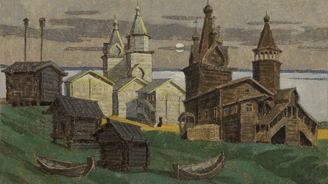 АРХИТЕКТОНИКА РУССКОГО СЕВЕРА АБСОЛЮТНО НАРУШЕНА И ПРИХОДИЛОСЬ ПОДСКАЗЫВАТЬ СВОЕМУ ЗАМУ Л.МИЛОВИДОВУ - НА ЧТО СЛЕДУЕТ ОБРАЩАТЬ ВНИМАНИЕ. ПРЕЖДЕ ВСЕГО НАДО ПОЧУВСТВОВАТЬ СЕВЕР, ЕГО ОСОБЕННОСТИ И ЧЕРТЫ, И ПО-ВООБРАЖЕНИЮ КОНСТРУИРУЯ КАРТИНЫ, МЫСЛЕННО ВОССТАНАВЛИВАТЬ ИЗУМИТЕЛЬНЫЙ СТРОЙ УЛИЦ И РАСПОЛОЖЕНИЕ ПОСТРОЕК. УВЯЗЫВАТЬ ЛАНДШАФТ И ОБУСТРОЙСТВО ВЫСОЧЕННЫХ ДЕРЕВЕНЬ. РУССКИЙ СЕВЕР - ЭТО ЦЕЛЫЙ ИНСТИТУТ УДИВИТЕЛЬНЫХ СТРОЕНИЙ ДЛЯ ХУДОЖНИКОВ, КОТОРЫЕ ДОЛЖНЫ САМИ СНАЧАЛА ПОСТИЧЬ, ЧТОБЫ ДОНЕСТИ ЭТОТ РУССКИЙ ДУХ СЛАВЯН ДО ЗРИТЕЛЯ.... А ТРОЙНОЙ ХРАМ В ЮРОМЕ, КОТОРЫЙ Я ВОССТАНОВИЛ ПО-ВООБРАЖЕНИЮ, СЛЕДУЕТ ОБЯЗАТЕЛЬНО ВОССТАНОВИТЬ ПОТОМКАМ ТЕХ БОЛЬШЕВИКОВ, КОТОРЫЕ ЕГО СПАЛИЛИ...