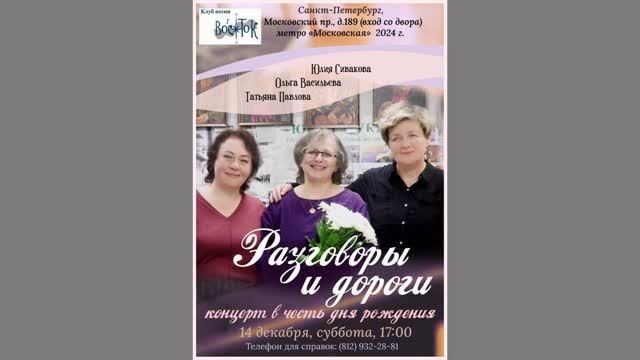 Юлия Сивакова, Ольга Васильева и Татьяна Павлова. Разговоры и дороги. Клуб песни «Восток». 14 декабря 2024 г. Видеозапись - Алла Левитан. Запись звука - Герман Колосов. Санкт-Петербург, Московский пр., д. 189.