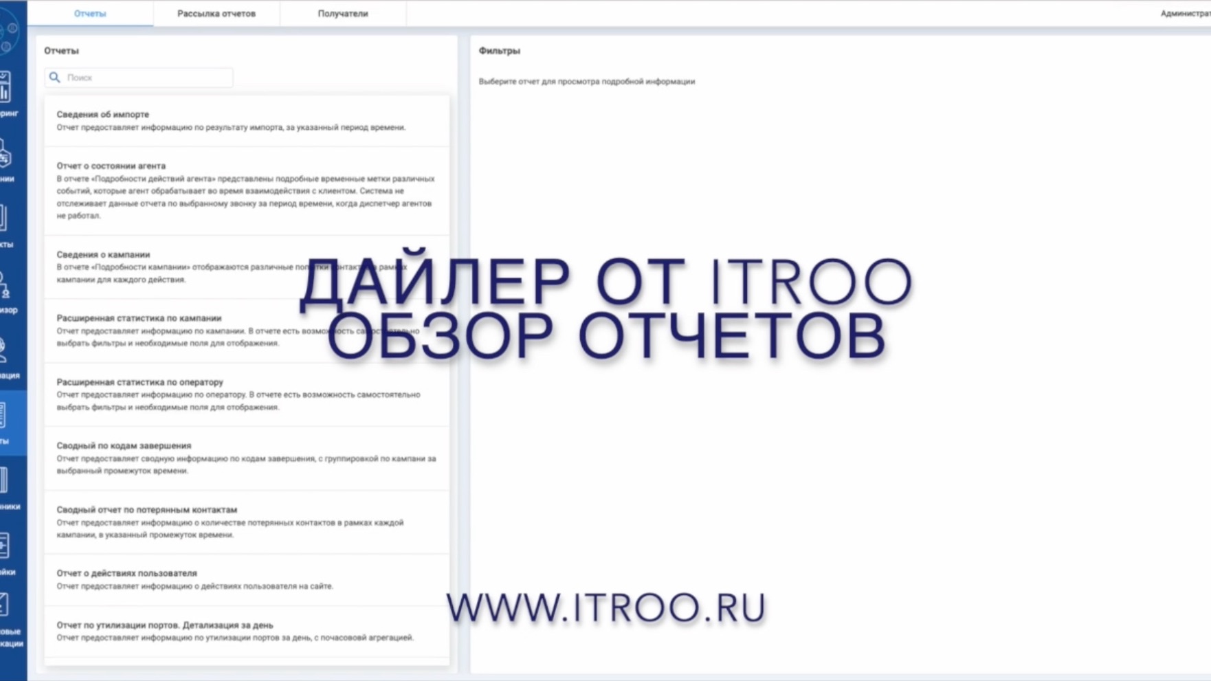 Это видео рассказывает про стандартные отчеты системы Дайлер от компании Itroo