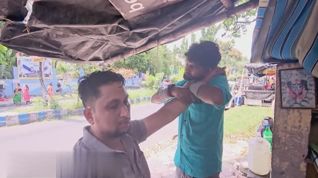 Жестокий, но успокаивающий массаж головы от индийского уличного парикмахера!