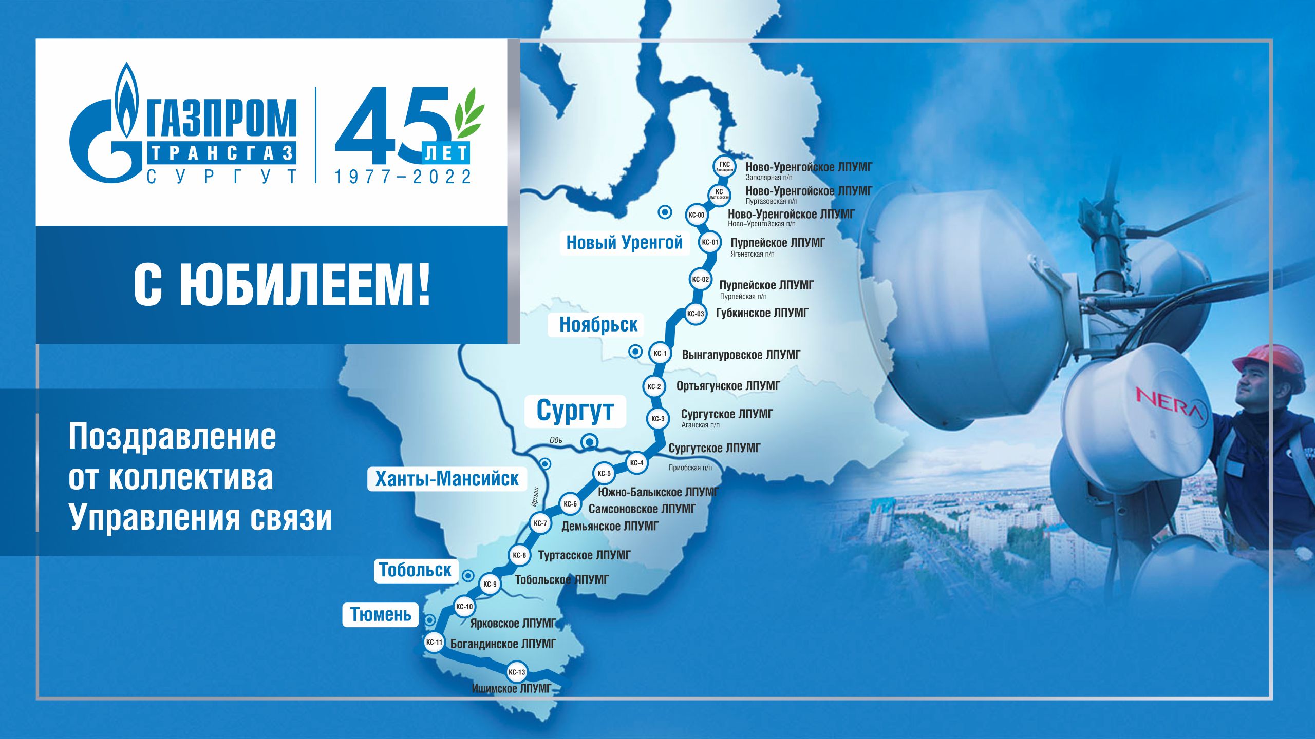 Поздравление с 45-летием предприятия от коллектива Управления связи