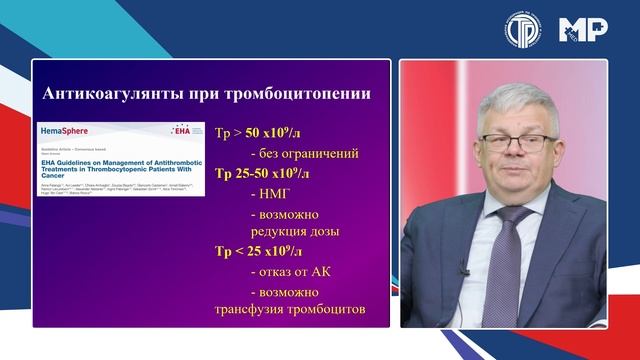Особенности проведения антитромботической терапии при тромбоцитопении.