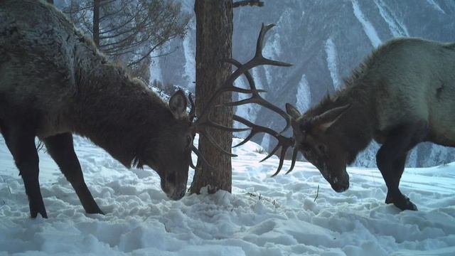 В Саяно-Шушенском заповеднике маралы позировали перед объективом автоматического фоторегистратора, установленного на маркировочной точке. Величественные животные вступают в поединок, преисполненные силой и мощью, они выставляют вперед свои размашистые рога и сражаются за господство на данной территории.