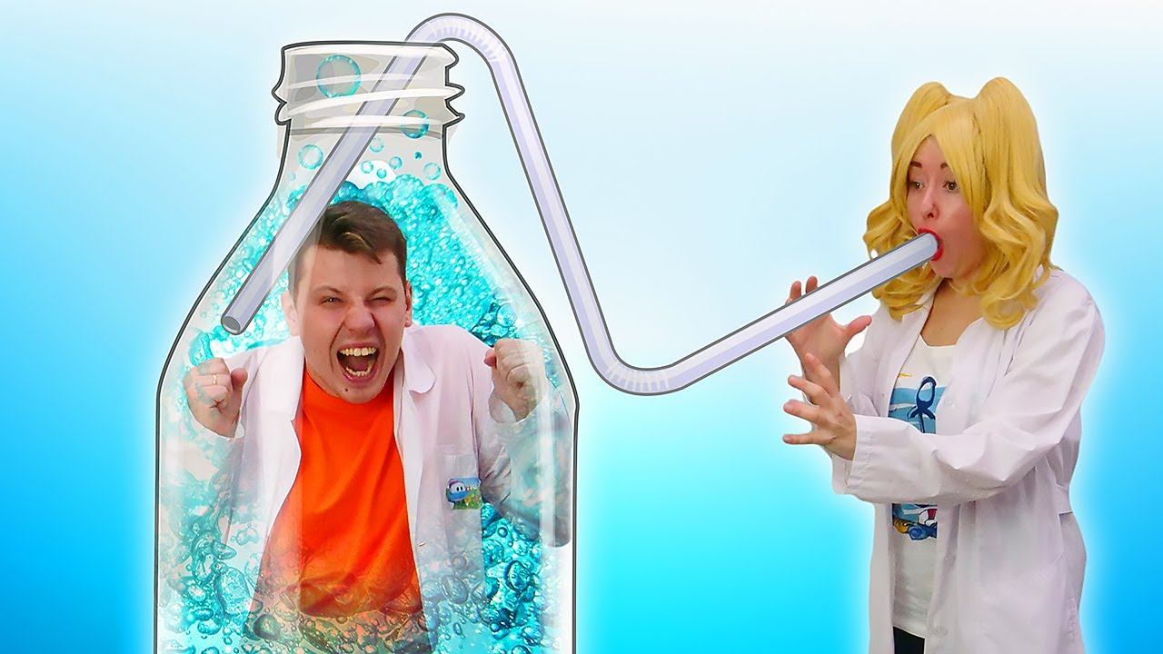 Научные опыты для детей – Давление в Бутылке и Сообщающиеся Сосуды! Весёлые уроки Физики Блондинке
