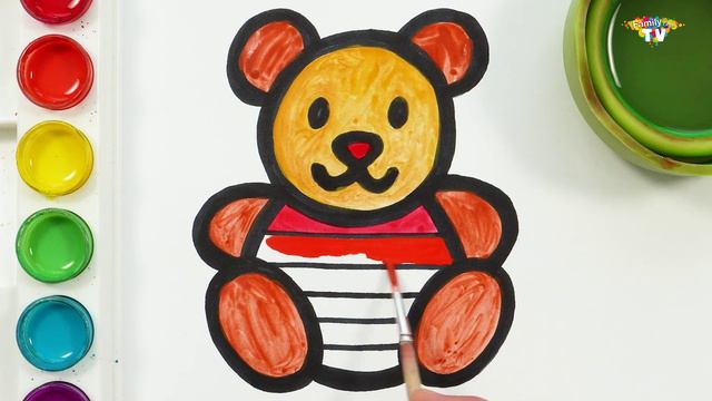 Рисунок, рисование и раскраска плюшевого мишки для детей и малышей Давайте изучать цвета вместе